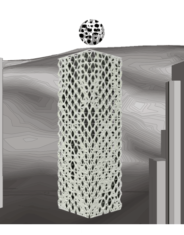 Una cúpula biométrica inspirada en la vida marina microscópica. Cuenta con una estructura ligera en forma de celosía y se fabrica mediante construcción robótica para resistir las duras condiciones ambientales de Marte.