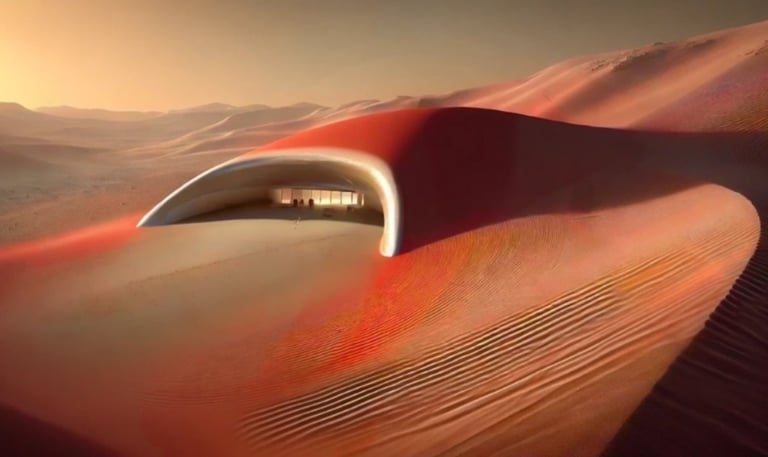 Inspirado en las formaciones de dunas marcianas, Barchan es una base móvil y modular optimizada para la construcción robótica. Utiliza recursos locales y estrategias de orientación solar para mejorar la eficiencia energética y la resiliencia estructural.